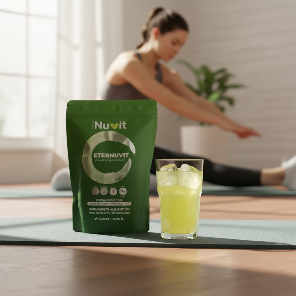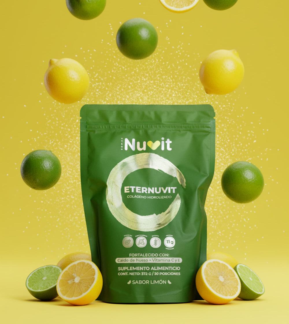 Además de aportar colágeno hidrolizado, que forma parte de huesos y articulaciones, Eternuvit contiene antioxidantes, ácido hialurónico y otros nutrientes que participan en procesos naturales relacionados con el bienestar y la apariencia de la piel.