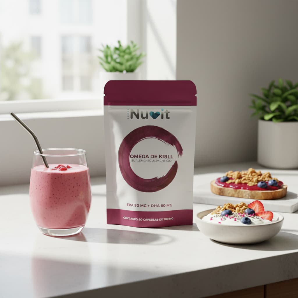 Contiene: aceites de krill (crustáceo).