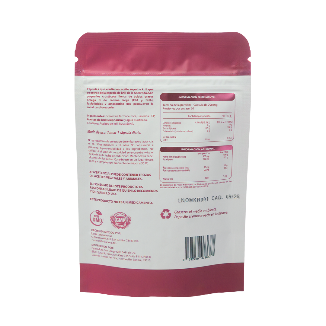 El aceite de krill antártico es una rica fuente de nutrientes esenciales que proveen una serie de beneficios potenciales para la salud. Los estudios indican que el aceite de krill puede ayudar a la salud de su mente, el corazón, los huesos, entre muchos más beneficios.